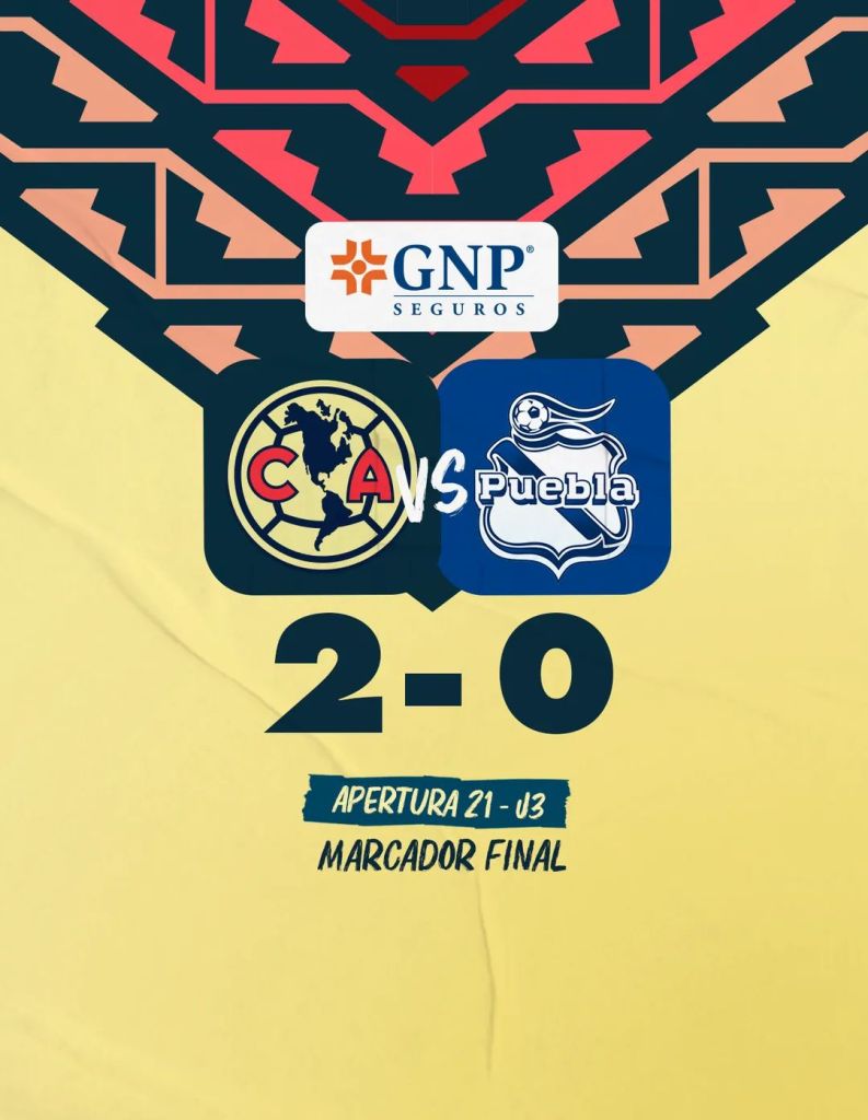 Esta tarde noche en la tercera jornada de este Apertura #gritamexico 2021 el Club América 🟡🔵🦅 como local en el azteca 🏟 logra sacar su segundo triunfo ante su similar del Puebla 🔵⚪ por un marcador de 2-0 ⚽️⚽️ con goles de Roger Martínez por la vía penal al 43′ donde al mismo jugador colombiano le comentieron la falta para poderlo cobrar de buena manera engañando al guardameta camotero, mientras que el segundo fue obra de Salvador Reyes al 54′ quien marca su segundo gol del torneo con las águilas a su ex equipo donde no festejo y pidió perdón, con este resultado las águilas del América llegan a 7 puntos con dos victorias y un empate. 🏆
