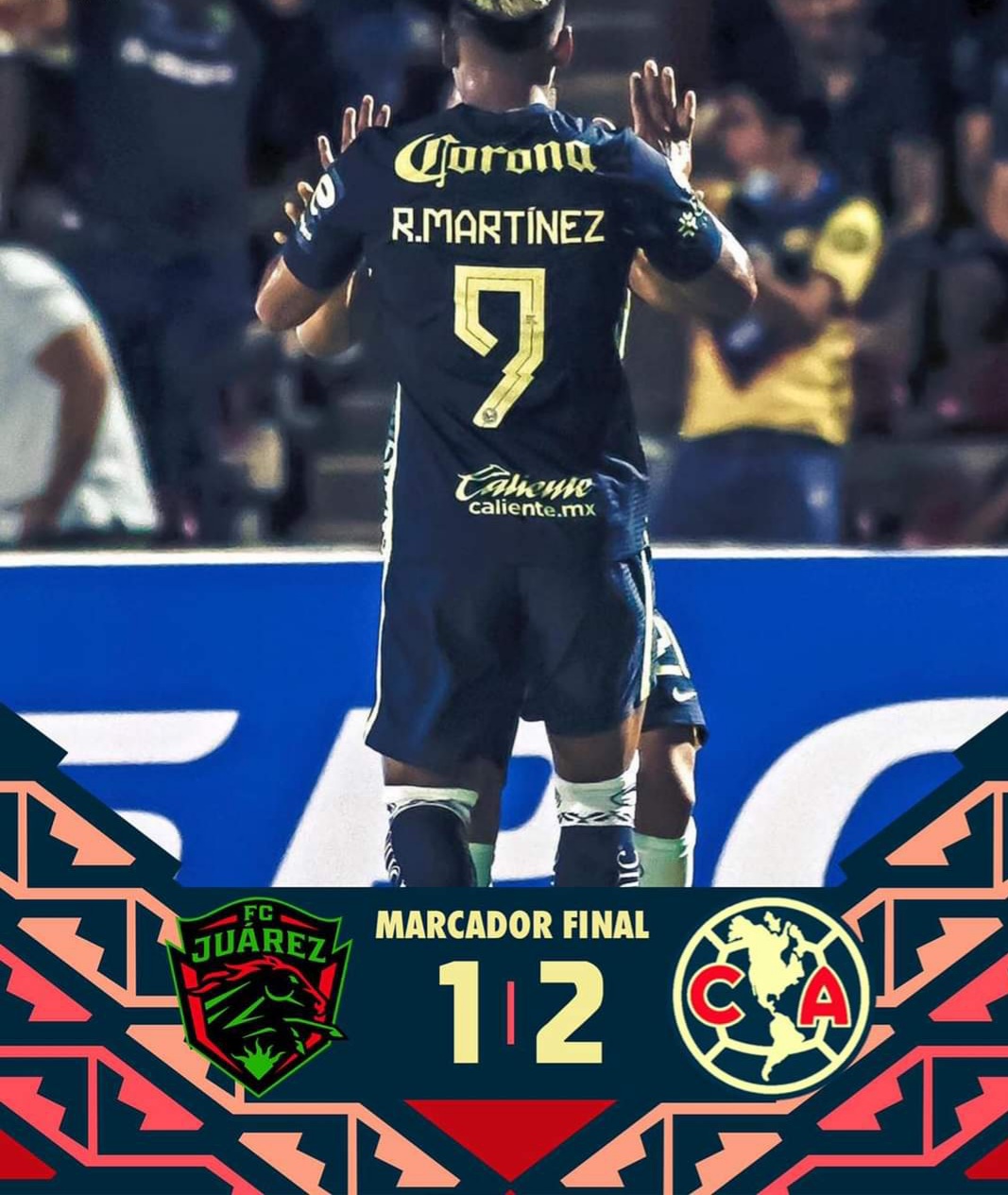 Esta noche en la doble jornada de este grita México apertura 2021 el Club América 🟡🔵 saca su primer triunfo como visitante ante juarez ya que nunca había podido ganar en ese estadio 🏟 desde que los Bravos subió a primera división, esta noche ganan las águilas 2-1 con goles por parte de los de coapa de: R. Martínez 32′, A. FIdalgo 52′ ⚽️⚽️ mientras que por parte de los Bravos el encargado de realizar el gol fue M. Galvan 31′ ⚽️., en un partido donde no fue muy espectacular pero si muy rispido donde por un error de la defensa al dormirse le hicieron el gol al América al cobrar de manera rápida una falta y no poder reaccionar de manera rápida, si embargo al minuto de haber anotado el América no bajo los brazos de manera inmediata con desborde y asistencia de S. Reyes que sigue demostrando por que lo trajeron a las águilas puso la asistencia para que Roger pudiera igualar el marcador, ya otra el segundo tiempo salio de cambio P. Aquino por lesión que aún se desconoce la gravedad y con buen juego en media cancha recuperando balones rápido lograron marcar el segundo gol por parte de las águilas, al final del partido los de coapa fallaron varias claras para poder hacer más grande el marcador., cabe mencionar que para este partido ya estuvo en la banca Renato Ibarra por lo cual ya puede ser considerado para lo que resta del torneo probablemente se vea para el próximo partido de las águilas ante los xolos de Tijuana. 🏆