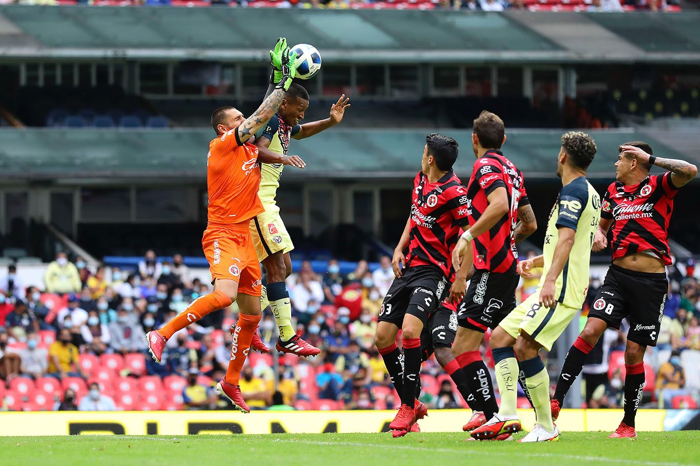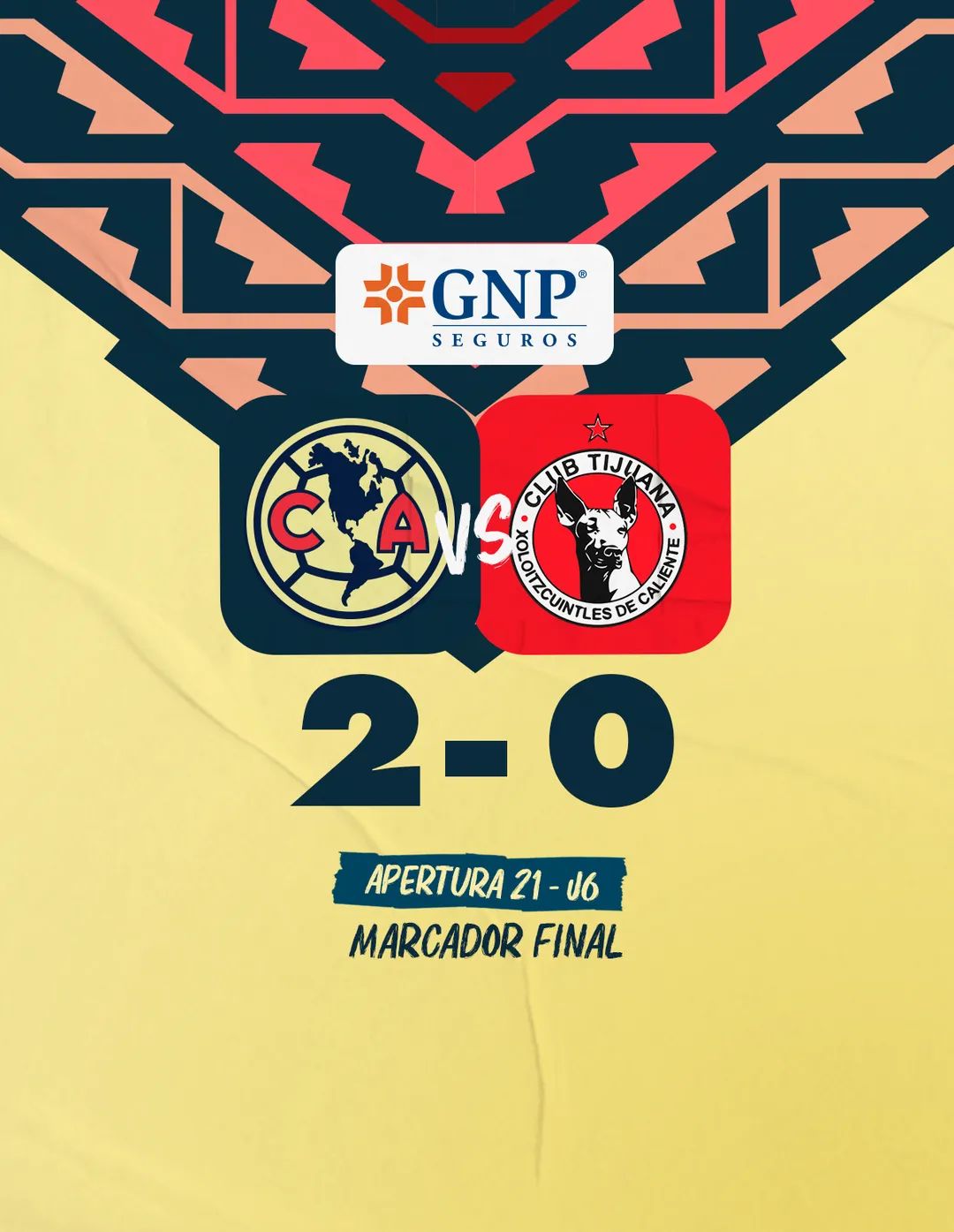 En esta jornada 6 de Grita México apertura 2021 el Club América 🟡🔵🦅 gana como local en el coloso de santa ursula 🏟por un marcador de 2-0 a su rival Tijuana, con goles de S. Cordova 90+1′ (P)⚽️ y R. Ibarra 90+4′.,⚽️ en un partido donde casi todo el tiempo fue un partido muy cerrado donde un Tijuana encontró la manera de cerrar todos los espacios que pudieran existir controlando todos los embates ofensivos de las águilas, con pocas llegadas a los arcos, tuvo que llegar el minuto 25 para que apareciera el primer disparo a portería, su fue el primer tiempo y para la segunda mitad los aficionados comenzaban a corear el nombre del tan esperado regreso de R. Ibarra, el América comenzó a modificar de la mano de Santiago Sánchez que es el segundo de Santiago Solari ya que el Dt no pudo estar presente en el partido el día de hoy por unos problemas de salud donde tuve que presentarse por los malestares que presentó, actualmente se sabe que no fue nada grave y hoy mismo lo dieron de alta sin embargo el doctor le mandó reposo y por eso mismo se tuvo que ausentar. Volviendo de la mano de S. Sánchez metio a Fidalgo, Ibarra y Viñas donde se vieron bien y muy conectados desde la entrada de cada uno generando ya al minuto 90 un jugada con centro de S. Cordova para que llegara Viñas, sin embargo le quedó un poco lejos pero el defensa central de Tijuana L. Gamiz le plantará los tachones por un costado al delantero azulcrema y se marcará la pena máxima, con un Cordova consentrado y dando un solo paso engaña al portero de Tijuana y pone al fondo de las redes., para el segundo gol en un contragolpe agarraron en desventaja 3 azulcremas contra 2 defensas y con una buena conducción de R. Ibarra colocó cruzado el disparo entrando al área grande y vencer a J. Orozco que por más que se estiro no pudo alcanzarla, con esto el América sigue como súper líder con 16 unidades dejándolos por segunda semana consecutiva en esa posición. Los aficionados corearon muy felices la entrada tanto de Renato como de Viñas al partido. ⚽️🦅