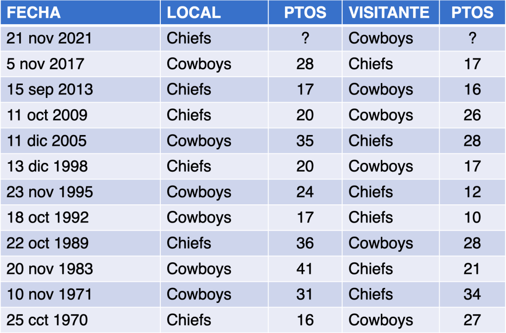 Los Dallas Cowboys de Mike McCarthy, Dak Prescott, Micah Parsons y Trevon Diggs visitarán a los Kansas City Chiefs de Andy Reid, Patrick Mahomes, Travis Kelce y Chris Jones en GEHA Field at Arrowhead Stadium el domingo 21 de noviembre a las 3:25pm hora del centro de México.