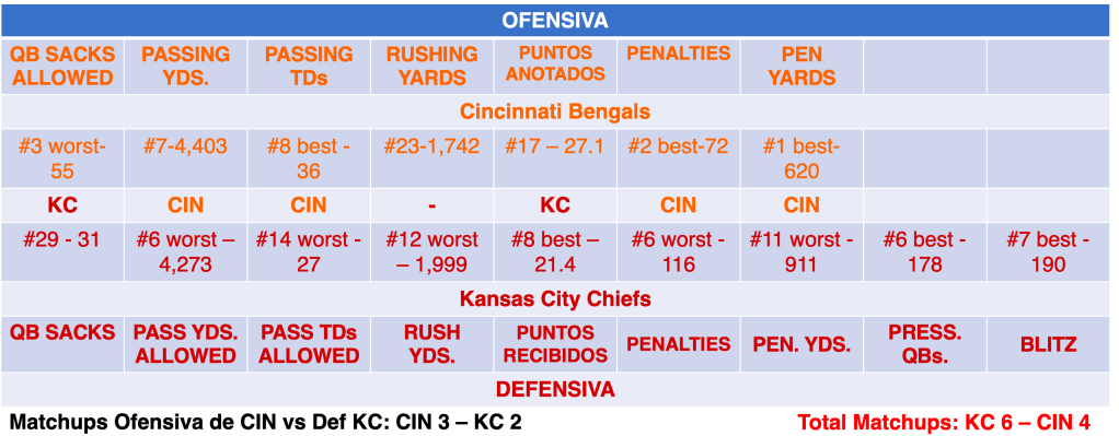 LA OFENSIVA DE LOS KANSAS CITY CHIEFS VS LA DEFENSIVA DE LOS CINCINNATI BENGALS.