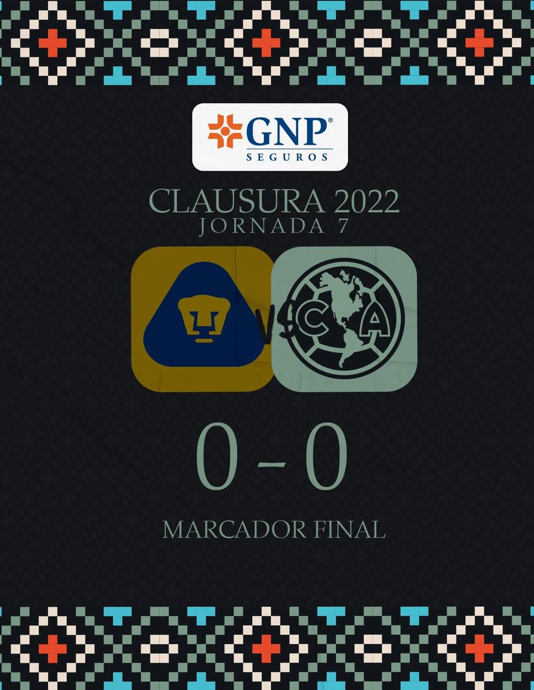 Jornada 7 clausura 2022 Pumas 0-0 América Estadio universitario