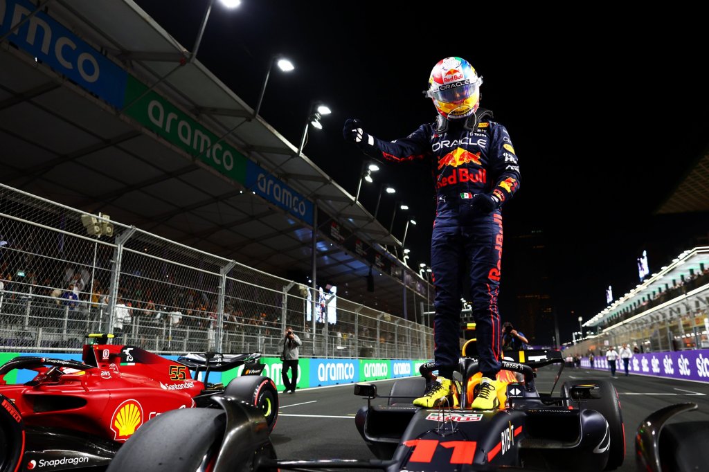 Este sábado Sergio «el Checo» Pérez se adjudicó la pole position en la GP de ARABIA SAUDITA, en el enfrentamiento de mañana el largará en primera fila seguido de Charles Leclerc.