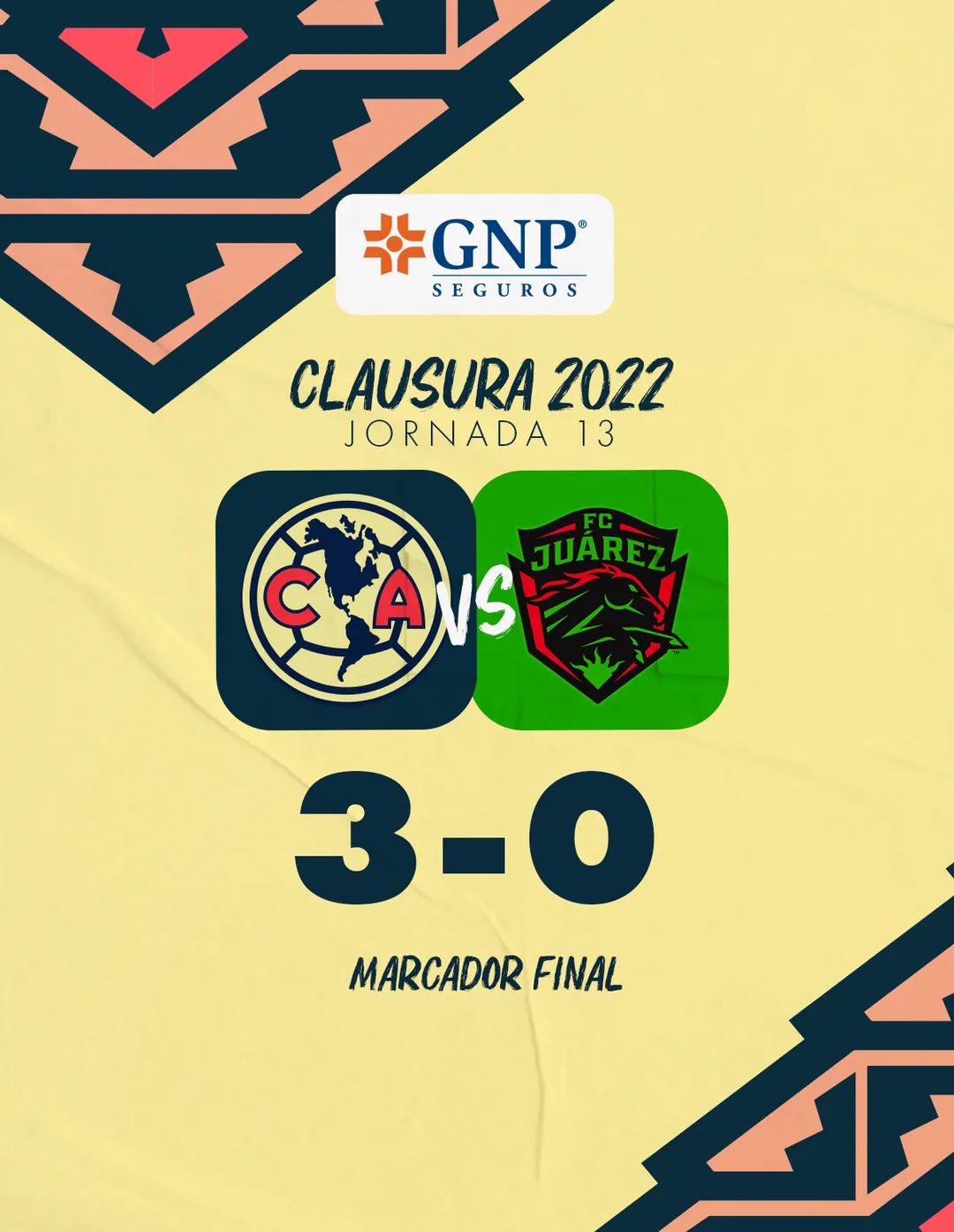 Jornada 13 clausura 2022 estadio azteca, América 3-0 Juárez goles: A. Zendejas 27′, F. Viñas 30′, D. Valdez 90+2′