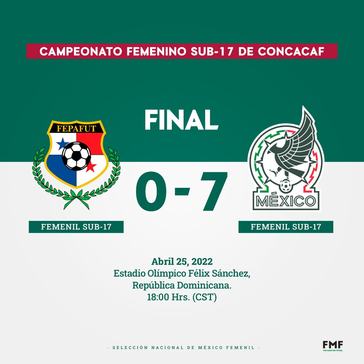 La selección femenina mexicana sub 17 venció a su similar de panamá por un marcador de 7-0 en el campeonato femenino sub 17 de CONCACAF.