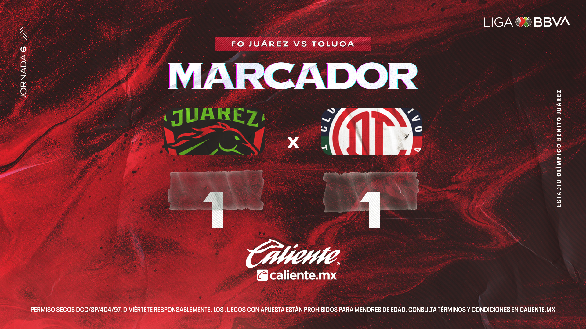 Juárez recibió al Toluca en el inicio de la jornada 6 en donde los escarlatas lucían como favoritos, pero se regresan a Metepec con 1 punto únicamente, el encuentro termino con un empate 1-1.
