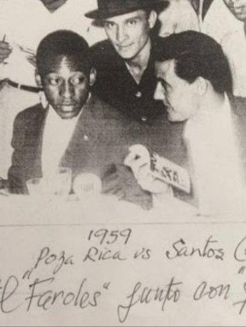 “El Faroles” se detuvo a rememorar aquel partido de futbol que jugó junto a Pelé, en el Parque Jaime J. Merino, de Poza Rica, Veracruz, el 7 de febrero de 1959, en donde el marcador fue de cinco a cinco entre la escuadra del Santos (que literalmente era la selección de Brasil que ganó la Copa del Mundo en Suecia 1958), y en donde al final del encuentro el director técnico del conjunto carioca preguntó que cómo se llamaba ese “chaparrito”, refiriéndose a “El Faroles” con el número ocho en su espalda.