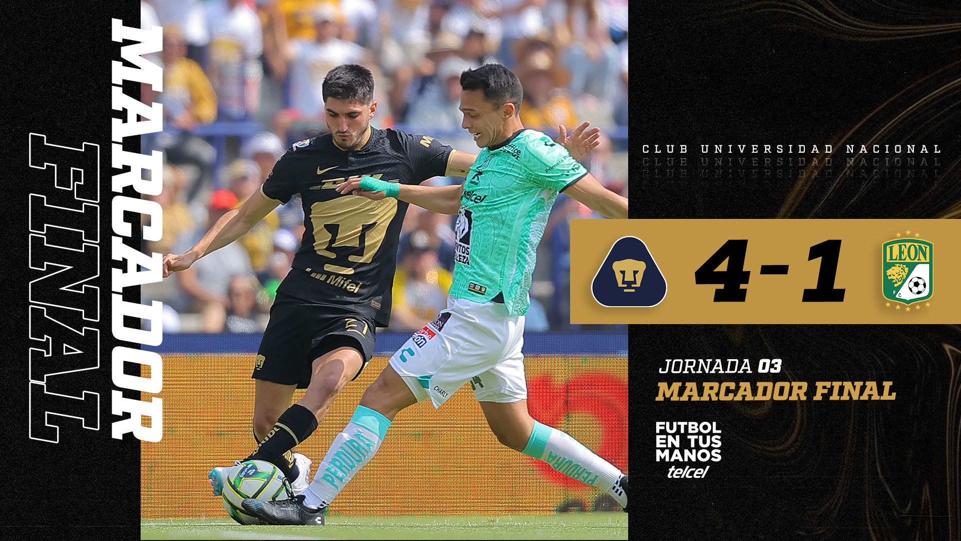 No es sorpresa para nadie que los Pumas no ha empezado de la mejor manera este Clausura 2023, con todo lo que ha rodeado el caso de Dani Alves, su baja del club y la poca confianza que la afición han tenido en el proyecto de Rafa Puente Jr, ha sido un mar de emociones para no solo todo el plantel si no también para toda la afición auriazul. Pero después de un momento un tanto gris viene un poco de color con este resultado ya que se imponen 4 goles a uno a la escuadra de los «panzas verdes» de León y que mejor que en casa.