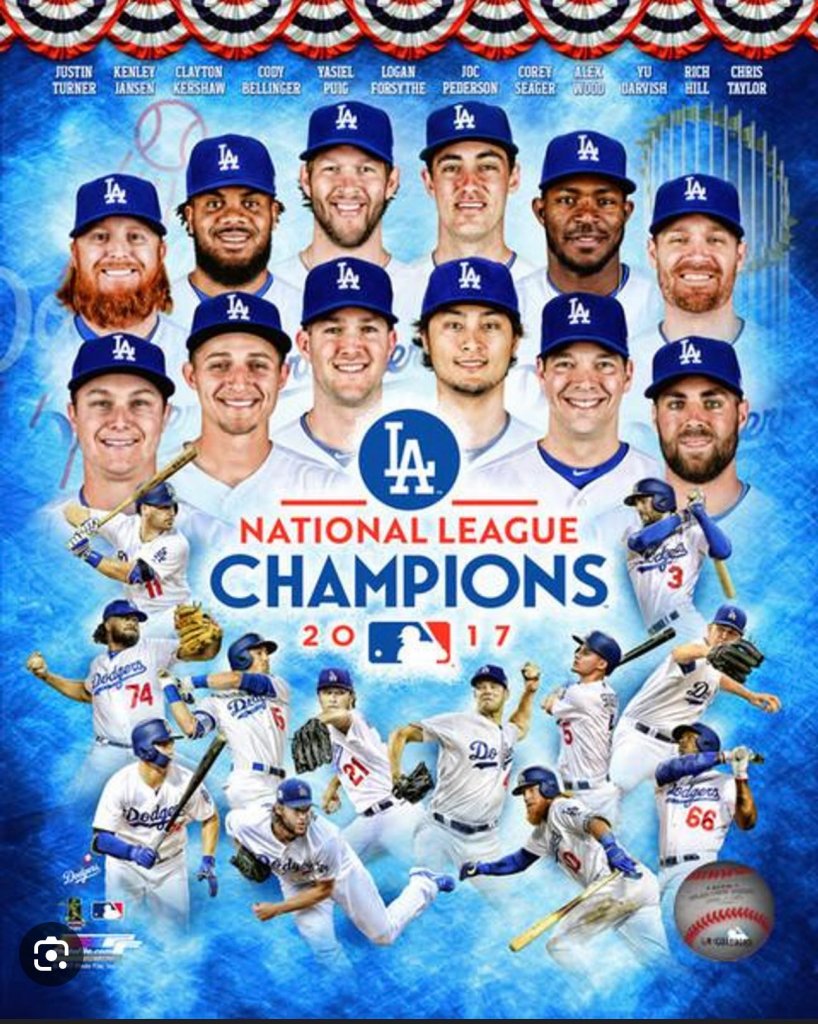 Los Dodgers de los Ángeles del 2017 llegaron hasta la Serie Mundial con un récord de 104-58 durante la temporada regular para terminar en primer sitio de la División Oeste de la Liga Nacional. Tuvieron seis caballos con un OPS arriba de .800 (Justin Turner, Cody Bellinger, Corey Seager, Chris Taylor, Yasiel Puig y Ausin Barnes), pero sólo a Turner por arriba de .300 de average, Seager y Barnes cerca de .300. En relación al pitcheo, fueron dos grandes exponentes abridores en los nombres de Clayton Kershaw con 2.31 de ERA con 18-4 y Alex Wood con 2.72 de ERA y 16-3 en ganados y perdidos.
