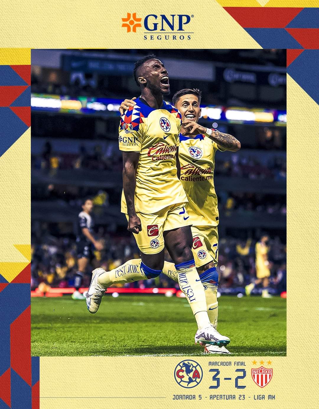 El América venció al Necaxa en la jornada 5 del apertura 2023 por un marcador de 3-2 a favor del local, en el emblemático estadio azteca., los goles de las águilas fueron obra por parte de D. Valdez 24′, B. Rodríguez 31′, J. Quiñones 61., mientras que del visitante los dos goles fueron de F. Batista 3′, 56′.