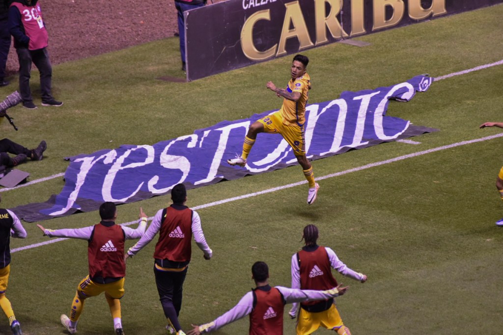 El primer tanto del encuentro llega al minuto 38 cuando los felinos tenían más control del juego, su mediocampista el uruguayo Fernando Gorriarán centró el esférico al área chica donde se encontraba su compañero Sebastián Cordoba quien se levantó y conectó el balón venciendo al guardameta de la franja.