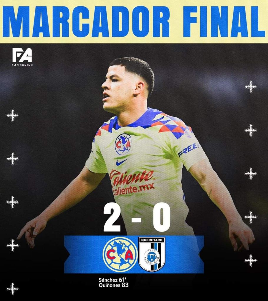 Jornada 2 clausura 2024 América 2-0 Querétaro en el estadio Azteca los goles del América fueron por parte de R. Sánchez 61′, J. Quiñones 84′.