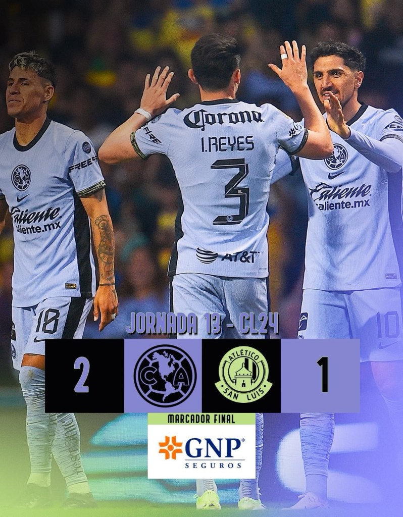 Las águilas del América recibieron en casa a su rival atlético de san Luis donde con tener varias bajas de jugadores titulares lograron vencer y sacar los 3 puntos del azteca en este avanzado ya torneo.