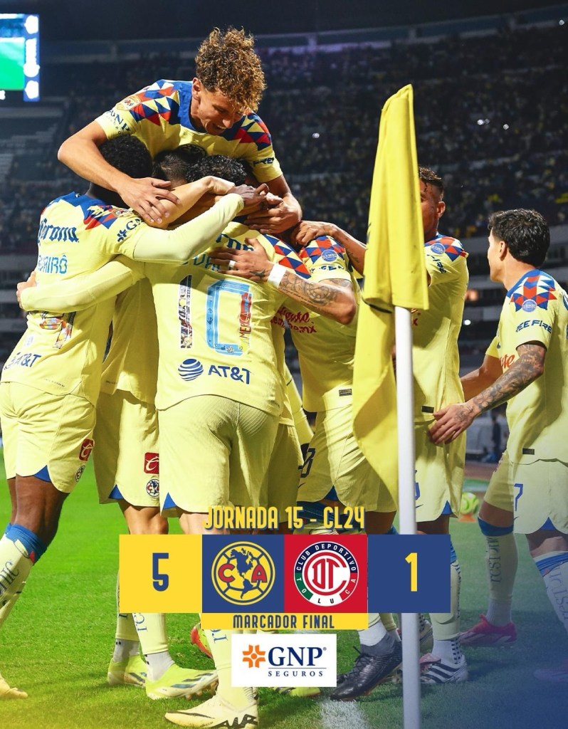 Las águilas del América ganan por un marcador abultado ante los diablos del Toluca en una exhibición de los de Coapa contundente para asegurar la primera posición de la tabla del torneo.