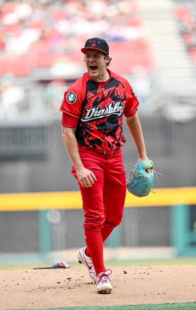 El estadounidense cuenta ya con 5 juegos ganados, una efectividad de 1.50 y 62 chocolates recetados, colocándose como líder de la LIGA Mexicana de Beisbol (LMB) en esas tres categorías, situación por la que fue elegido por la LMB para subir al centro del diamante y comenzar el encuentro.