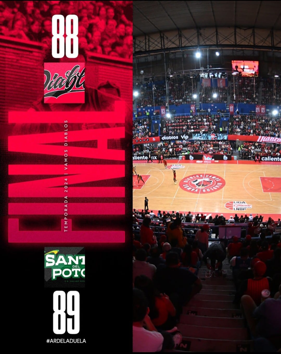 22 de julio de 2024, Ciudad de México, Gimnasio Juan de la Barrera, casa de los Diablos Rojos del México, se jugó el primer duelo de la serie contra Santos del Potosí, donde la escuadra capitalina dirigida por el Coach Nicolás Casalánguida, fue derrotada con una pizarra final de 89-88. Este primer encuentro pasa a la historia de Diablos Rojos del México como locales en la Liga Caliente.MX LNBP.