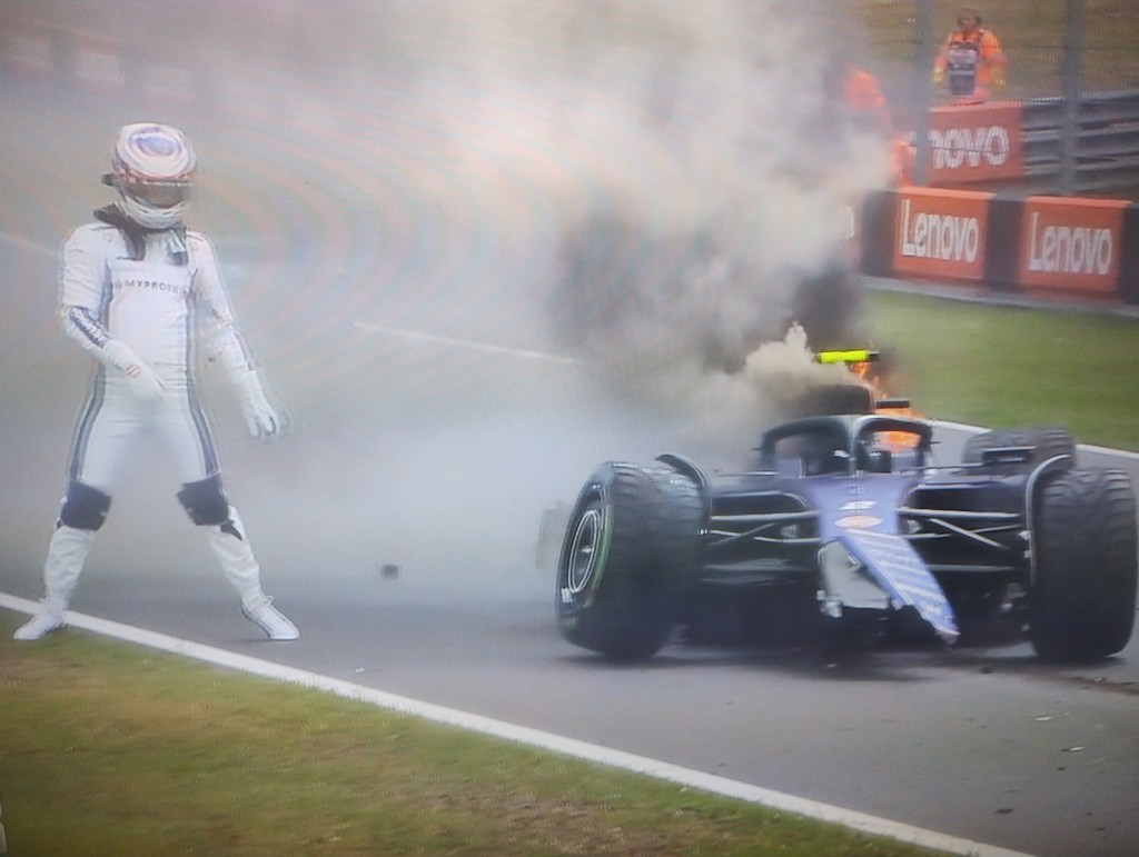 Afortunadamente el piloto de Williams salio por su propio pie y de manera rápida ya que le avisaron que había fuego en la parte trasera del coche.