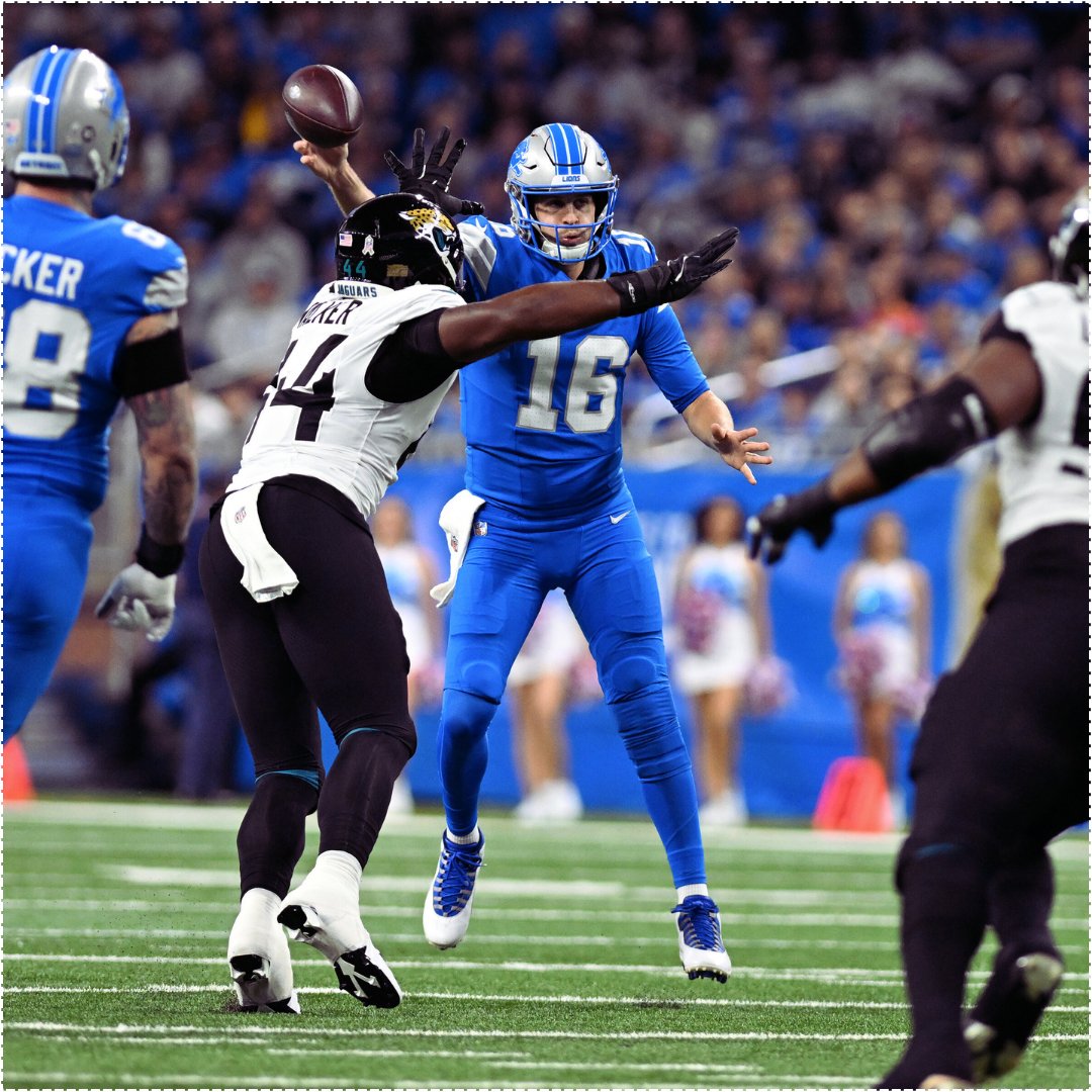 Los Detroit Lions derrotaron a Jacksonville, 52-6, han mejorado su foja a 9-1. Es la primera vez que los Lions ganan nueve de sus primeros 10 juegos de una temporada en 90 años, desde que comenzaron 10-0 en la temporada de 1934.