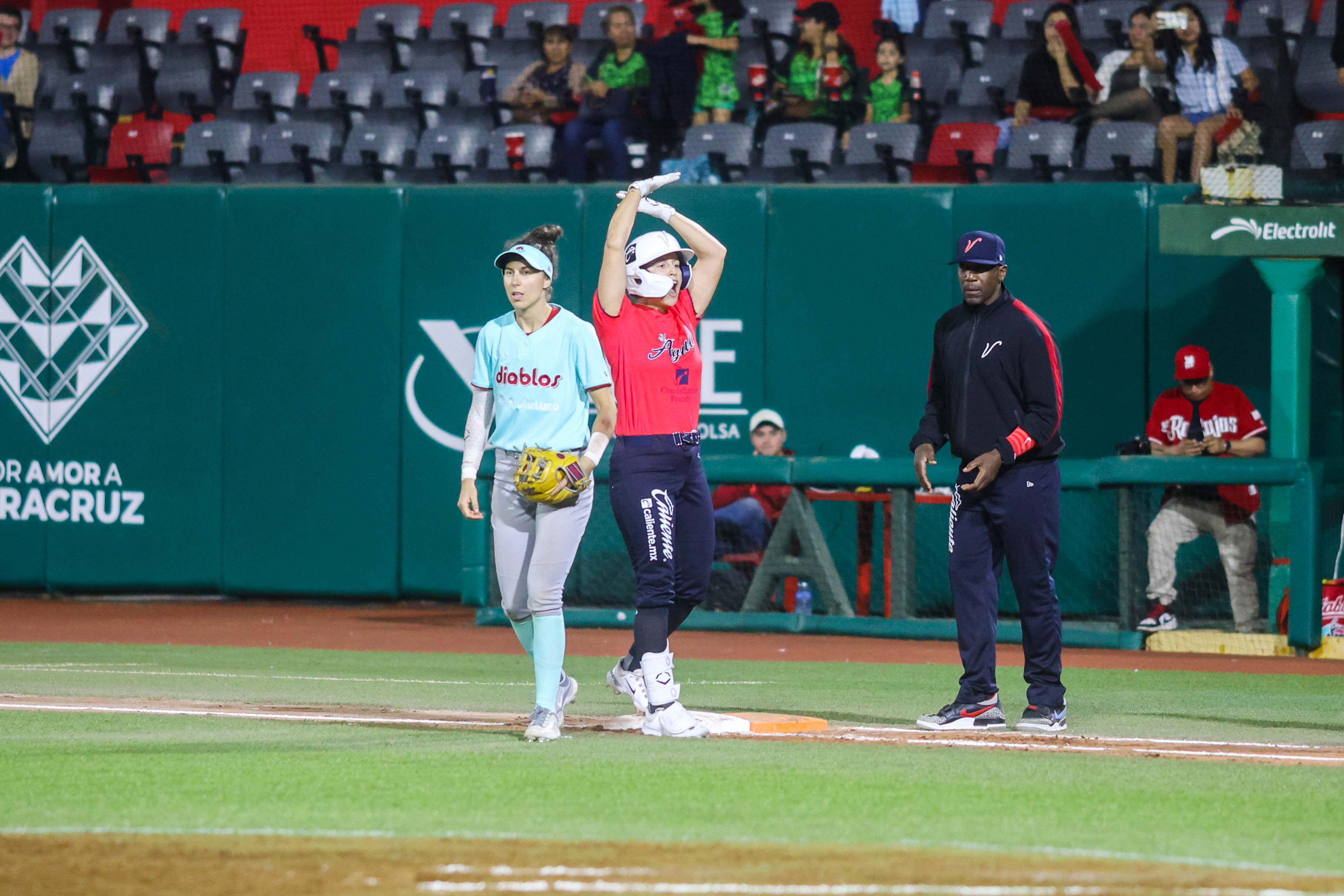 En la séptima entrada, el México Rojo colocó dos corredores en las bases ante Lisa Hop y vino el relevo de Yilian Tornés, quien recetó dos ponches y colgó el cero para el triunfo de las jarochas.