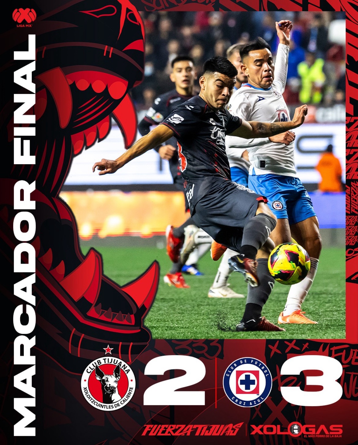 El conjunto celeste empezó a tener más jugadas de peligro, ya que, Xolos salió con bastantes falencias en la zona defensiva y media hora más tarde, Carlos Rotondi sacó un disparo, donde Jesús Corona dejó un rebote para que el griego hiciera la segunda anotación con un testarazo.
