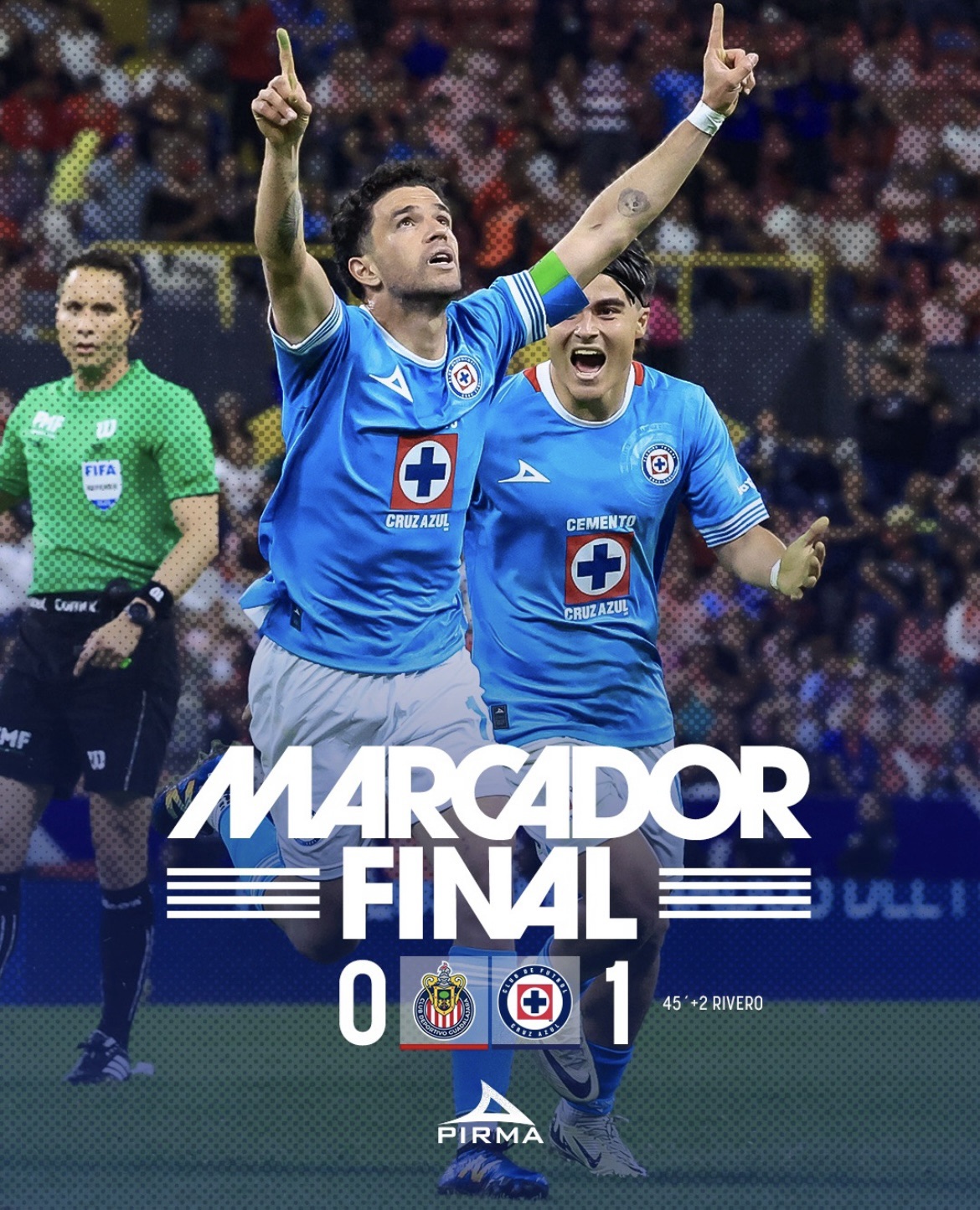 También, los celestes tuvieron sus chances, pero ninguna de peligro. Fue hasta el 45’, donde Luka Romero encaró por la banda de la derecha, y mandó un centro al área para Ignacio Rivero, quien remató de cabeza de manera soberbia para vencer a Raúl Rangel.