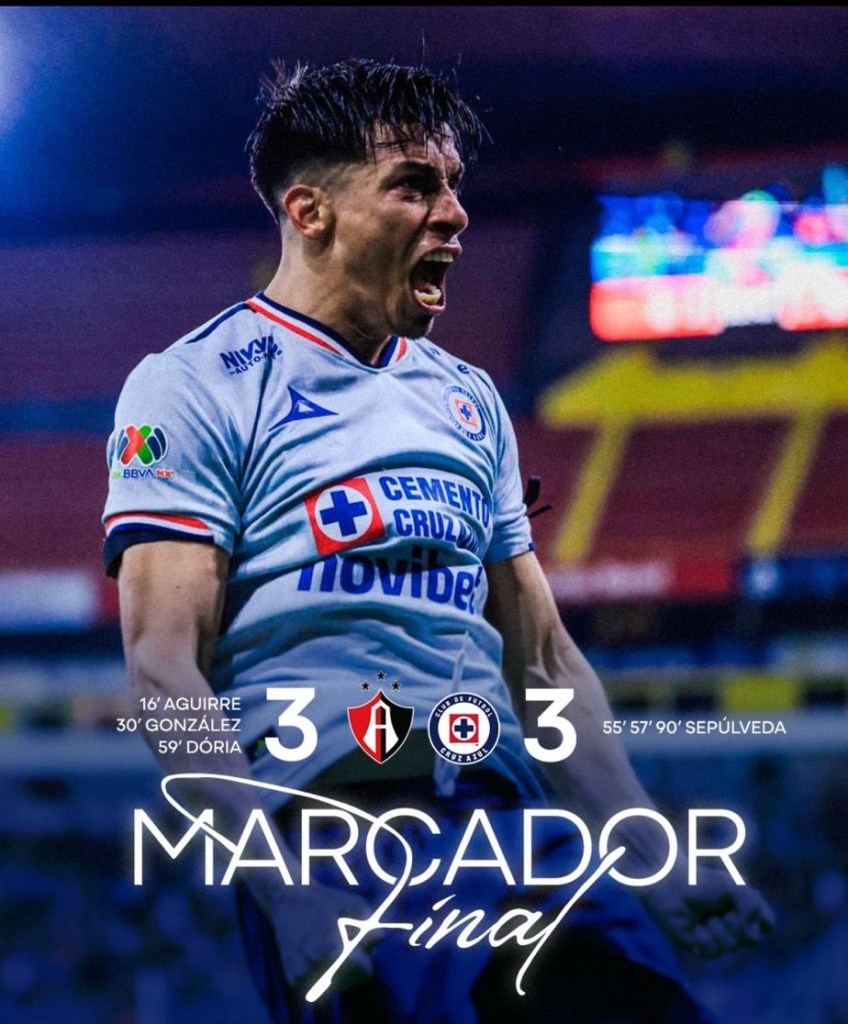 Cruz Azul rescató el empate ante Atlas con marcador de 3-3, en un auténtico partidazo en la cancha del Jalisco y con un hat trick de Ángel Sepúlveda.