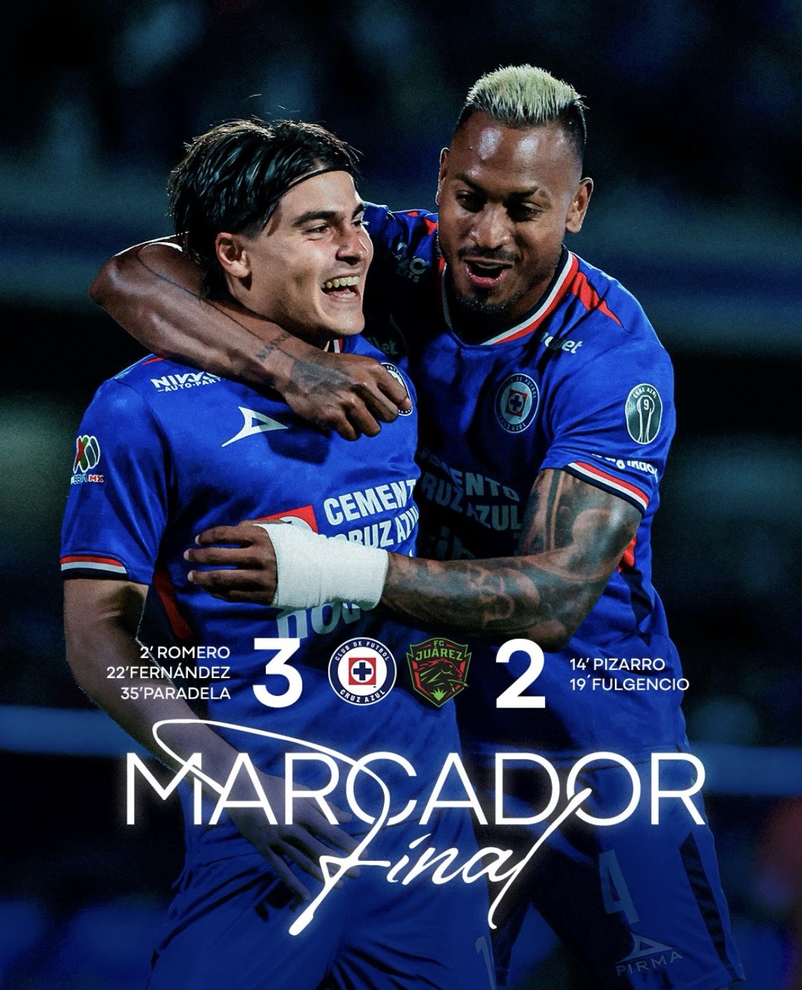 Cruz Azul es momentáneo líder del Apertura 2025, tras conseguir su séptima victoria consecutiva en el torneo, ahora ante Juárez con marcador de 3-2, en el Estadio Olímpico Universitario.