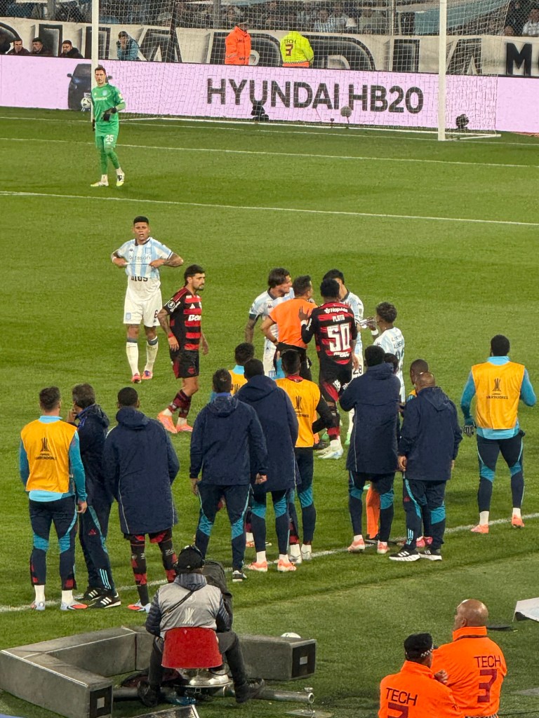 En el segundo tiempo, Racing salió decidido a volcar el resultado a su favor, ya que debía revertir la derrota de la ida para avanzar. Tocó, buscó espacios, tuvo corners, 13 en total y empujó, pero no logró concretar. Flamengo, por su parte, sufrió la expulsión del atacante Gonzalo Plata poco después del inicio del complemento, lo que dejó a los cariocas con diez jugadores durante gran parte del tramo decisivo.