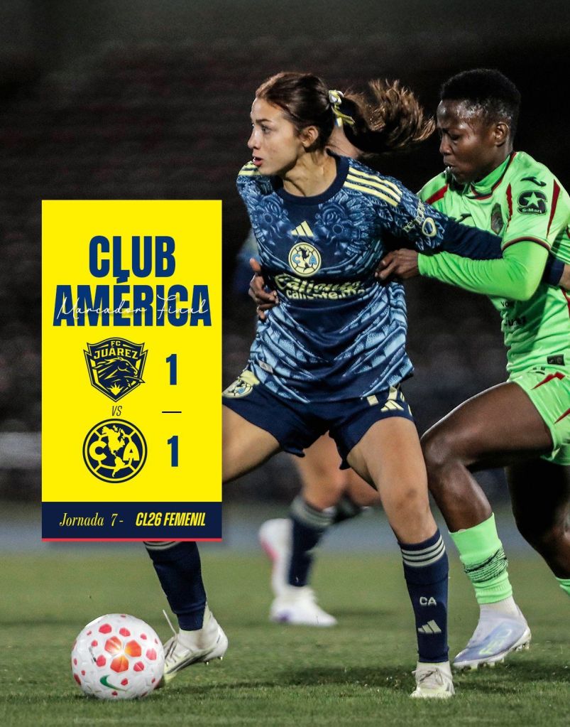 En la Séptima Jornada del Clausura 2026 de la Liga Mx Femenil, Juárez consiguió empatar ante el América a un gol en el estadio Olímpico Benito Juárez. Fue al minuto 33 que el equipo de América, dirigidas por Ángel Villacampa consiguió abrir el marcador por conducto de la mexicana Scarlett Camberos venciendo a la guardameta Emily Alvarado.