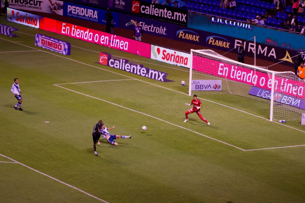 En el minuto 32 un fierrazo por parte del colombiano Duván Vergara por el sector izquierdo en los limites del área grande vence la meta del guardameta poblano, sin embargo los de la franja pedían mano. El árbitro central Omar González Veléz tuvo que ser asistido por el VAR anulando el tanto ya que el esférico fue controlado indebidamente por el delantero.