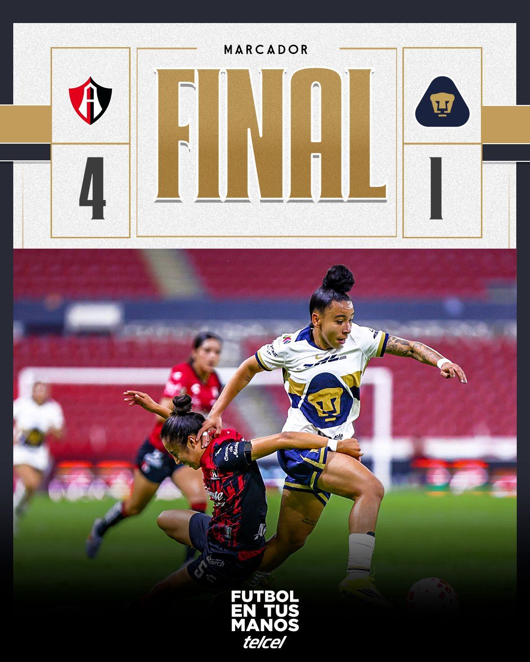 En la Jornada siete del Clausura 2026 de la Liga Mx Femenil, Atlas goleó 4-1 a Pumas en el estadio Jalisco.