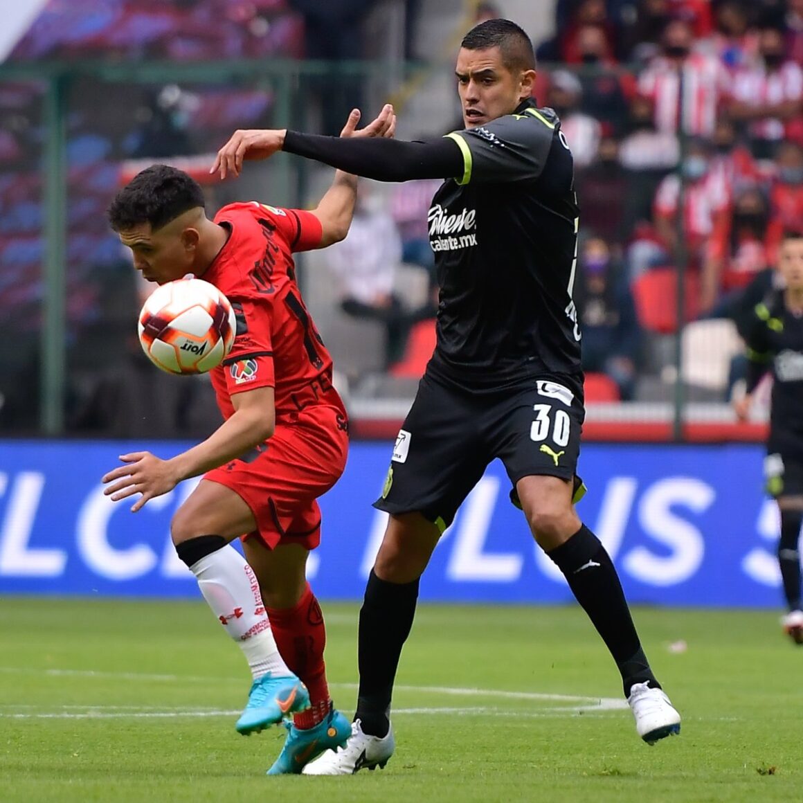 Desde principios del partido, las Chivas iban llevando el encuentro en base a tiempo y posesión de balón, hasta que en el minuto 23, se da la expulsión de Carlos Cisneros por un tremendo pisotón en contra de Haret Ortega, ya que desde ese momento se empezaba a crear la presión en contra del equipo del Rebaño, esto se mantuvo durante todo el el juego, y así no se hizo esperar que se diera un penal en contra del Chiverío, esto en el minuto 28, cosa que después de unos minutos de estarlo verificando, el arbitro central da la señal para checarlo en el VAR, cosa que después de esto, se da por no valido, y el encuentro seguía manteniendo el marcador de 0-0.