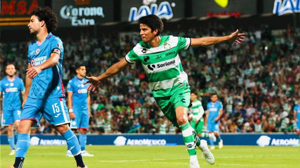 Arrancó el encuentro y los dos equipos tuvieron llegadas de peligro, Santos hizo su partido y presiono desde el arranque por el gol que abriera el marcador, fue al minuto 18′ cuando en un tiro de esquina y una muy mala marca de la defensiva celeste, los laguneros por conducto de Javier Correa, abrió el marcador con un gran remate de cabeza que dejaba sin posibilidades al arquero Sebastian Jurado.