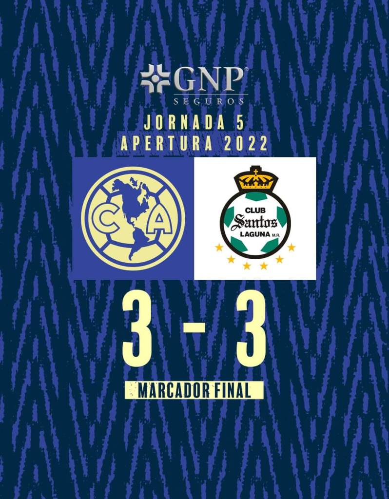 Desde el principio del partido salieron ambos equipos a darse con todo para que al minuto 17 ya llevará 3 el goles el partido, los dos goles de Santos fueron del ex americanista Leonardo Suárez quien tuvo una excelente noche., mientras que por parte de las águilas Henry Martin se posiciona aún más cono el líder de goleó en el torneo.