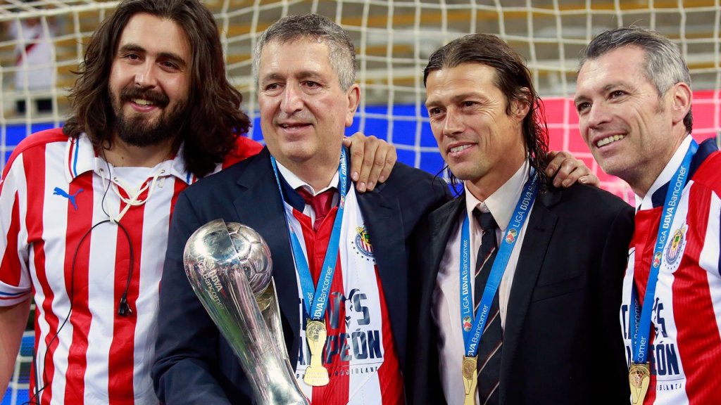 De izquierda a derecha: Amaury Vergara, Jorge Vergara, Matías Almeyda, José Luis Higuera, la tarde que conquistaron el 12 avo. título de liga, 28 de mayo de 2017. Foto: Juan Mejia/Jam Media/LatinContent vía Getty Images.