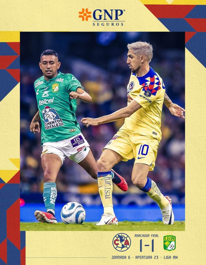 Las águilas del América empataron a 1-1 contra el león dentro de la jornada 6 del apertura 2023 dentro del coloso de Santa Úrsula., con gol de Quiñones al 65′ de penal por parte de las águilas y F. Viñas al 58′ por parte de la fiera.