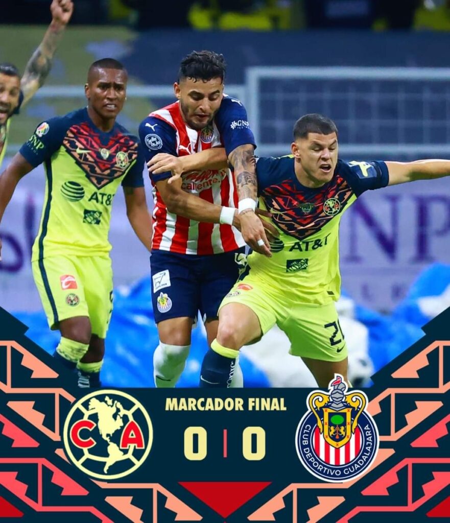 Esta noche en el clásico nacional que se llevó a cabo en el Estadio azteca 🏟 correspondiente a la jornada 10 de este Apertura 2021 “GritaMexico” término con un punto para equipo en un partido donde el primer tiempo estuvo más parejo para ambas escuadras y siendo factor el portero del Guadalajara para asi no permitir gol en su portería, de igual manera hubo dos jugadas que no se revisaron ante el VAR y debieron ser expulsión para dos jugadores de las Chivas tanto para C. Calderón como para Ponce quienes no deberían de seguir en el encuentro. Para el segundo tiempo el América se fue con todo y fue amplio dominador del encuentro el Dt realizó cambios y lanzó al equipo al frente sin embargo sin obtener resultados favorables y así sellar el empate a 0 en el coloso de santa ursula, cabe mencionar que con este resultado las águilas siguen como líderes generales con 21 puntos. 🔥🦅🟡🔵🏆