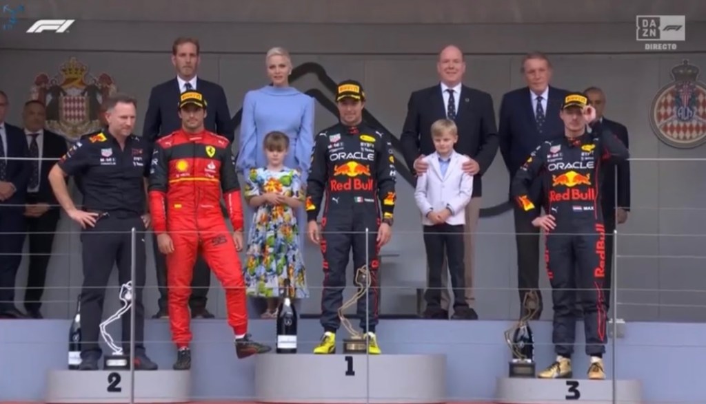 El segundo puesto fue para el español Carlos Sainz Jr., quien cronometró 1.154 segundos posteriores al arribo del tapatío. El tercer puesto le correspondió al compañero de escudería de Pérez, el neerlandés Max Verstappen, quien llegó 1.491 segundos después. De ésta forma la escudería Red Bull hizo el uno-tres en éste circuito callejero de Mónaco.