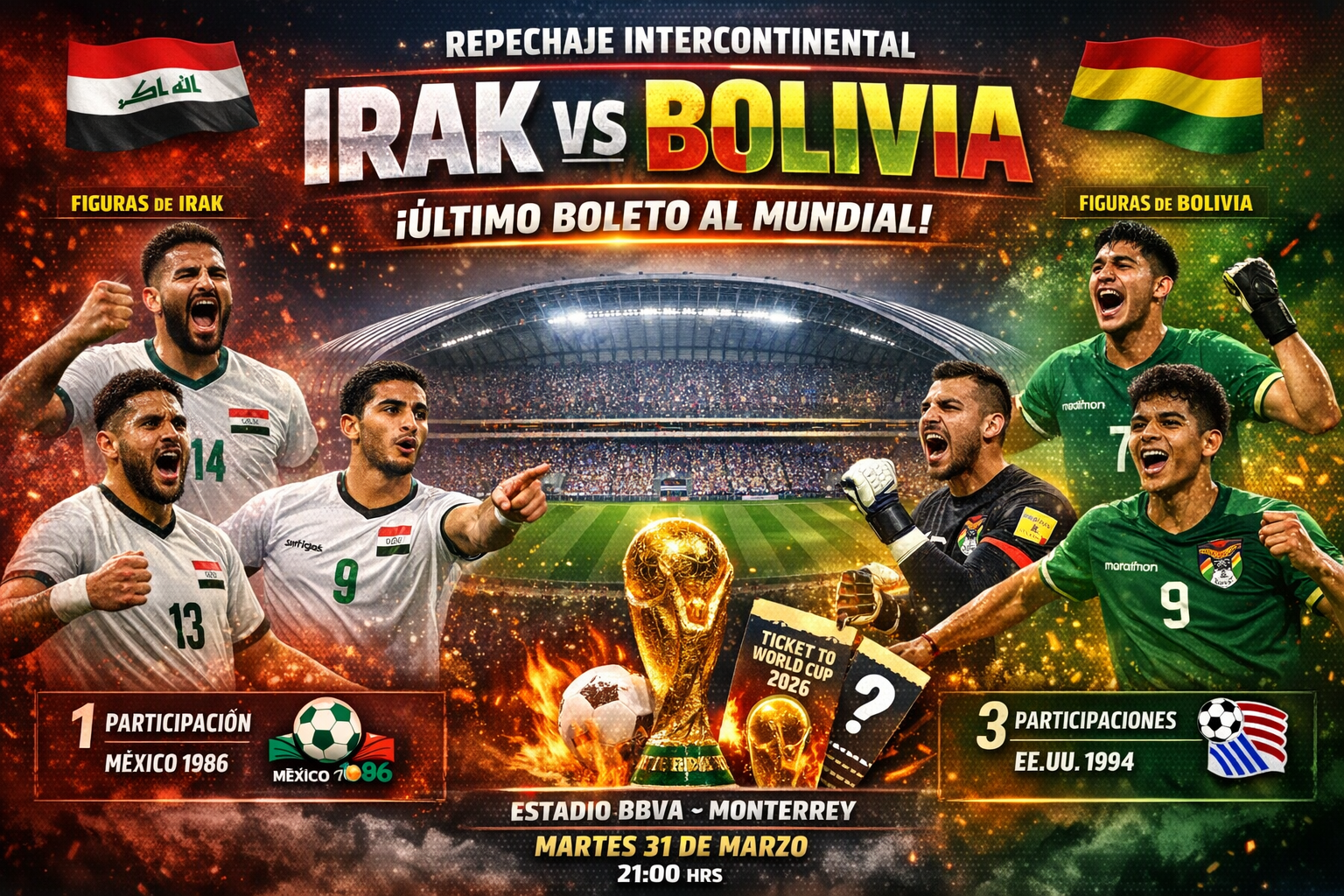 Irak vs Bolivia en Guadalupe, por el último boleto a la Copa Mundial 2026.