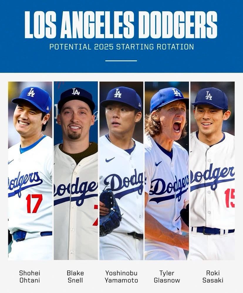 El equipo también tiene a Yoshinobu Yamamoto listo para seguir en el Juego 2, lo que muestra la profundidad en la rotación. El tercero sería Tyler Glasnow y el cuarto el fenómeno Shohei Ohtani, quien el pasado viernes 17 de octubre, en el cuarto juego de la Serie de Campeonato de la Liga Nacional, simplemente, para la gran mayoría, tuvo la mejor actuación de un pelotero en un juego, sea o no de playoff, en la historia de MLB, al lanzar 6 entradas, con 10 ponches, 3 bases por bolas, 2 hits permitidos y 0 carreras y conectar 3 home runs solitarios y recibir una base por bolas, para sentenciar la NLCS, 4-0 juegos y conseguir el boleto a la WS 2025.