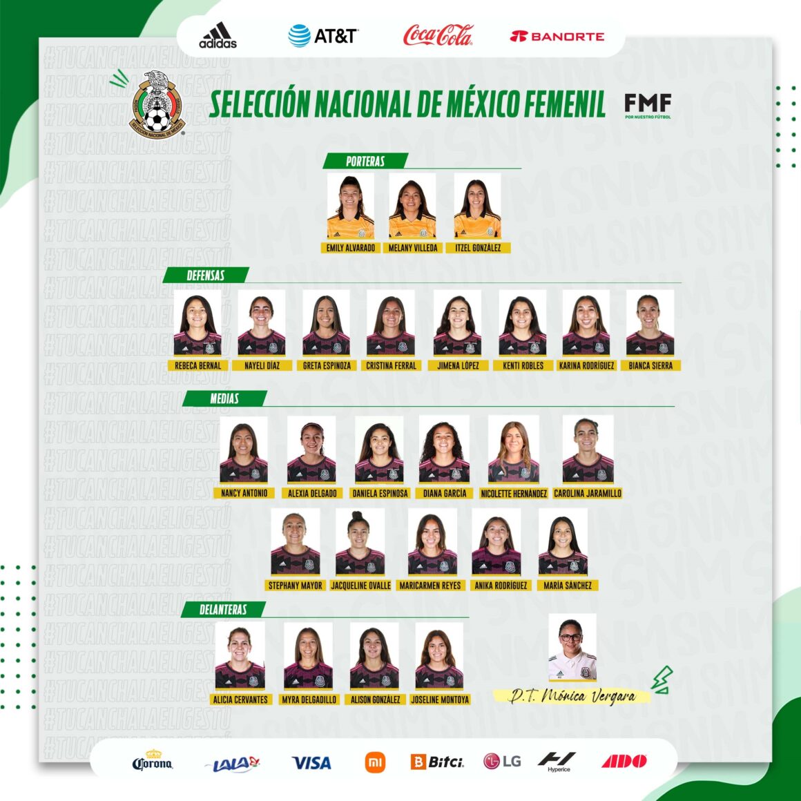 Las 26 futbolistas convocadas por Mónica Vergara iniciaran concentración a partir del domingo 21 del mes en curso, en las instalaciones del Centro de Alto Rendimiento de la Federación Mexicana de Fútbol.