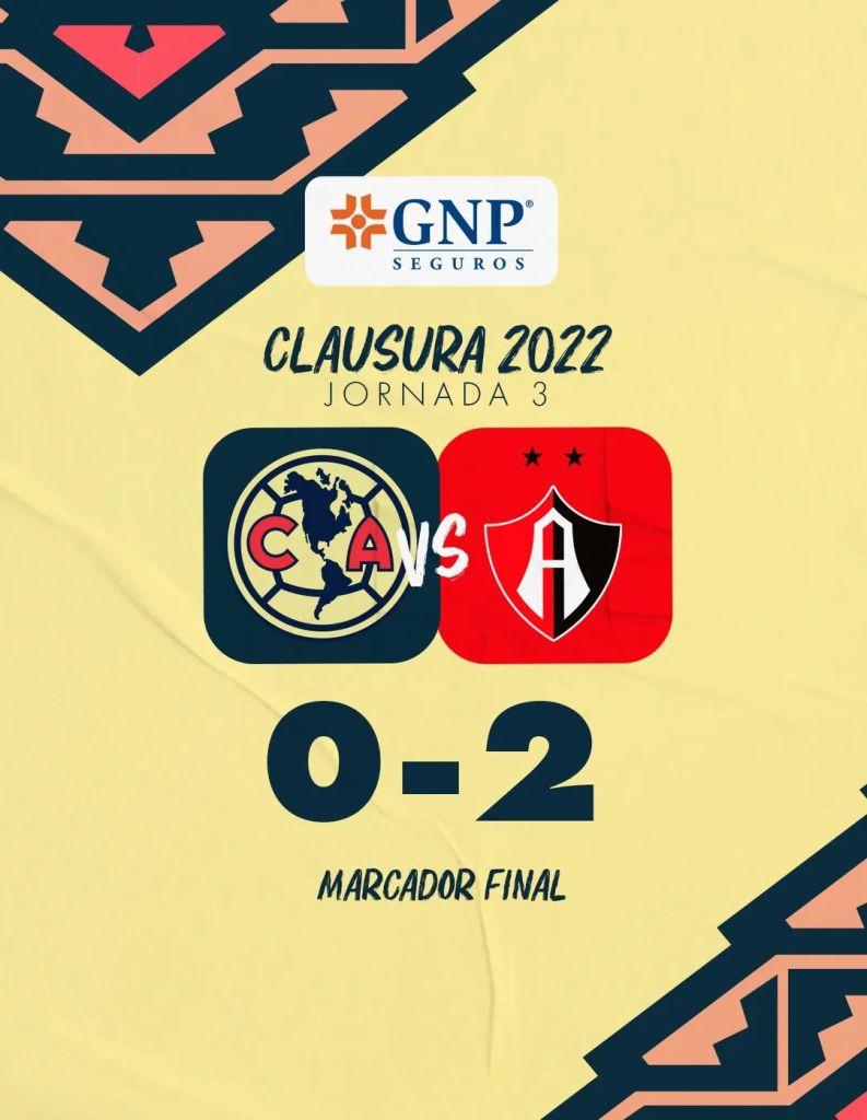 Clausura 2022 América 0-2 Atlas, Estadio Azteca 🏟⚽️ jornada 3, los goles del Atlas fueron por parte de: D. Barbosa 70′, J. Herrera 90+5′ mientras que por parte del América F. Viñas vio la tarjeta roja 🟥