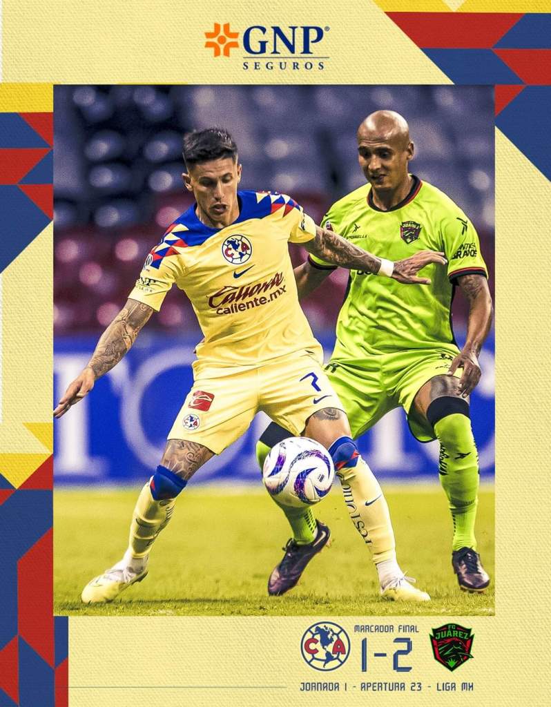 Apertura 2023 Estadio Azteca América 1-2 Juárez gol del América L. Suárez 15′., Goles Juárez A. García 86′. A. Zapata 90+5′