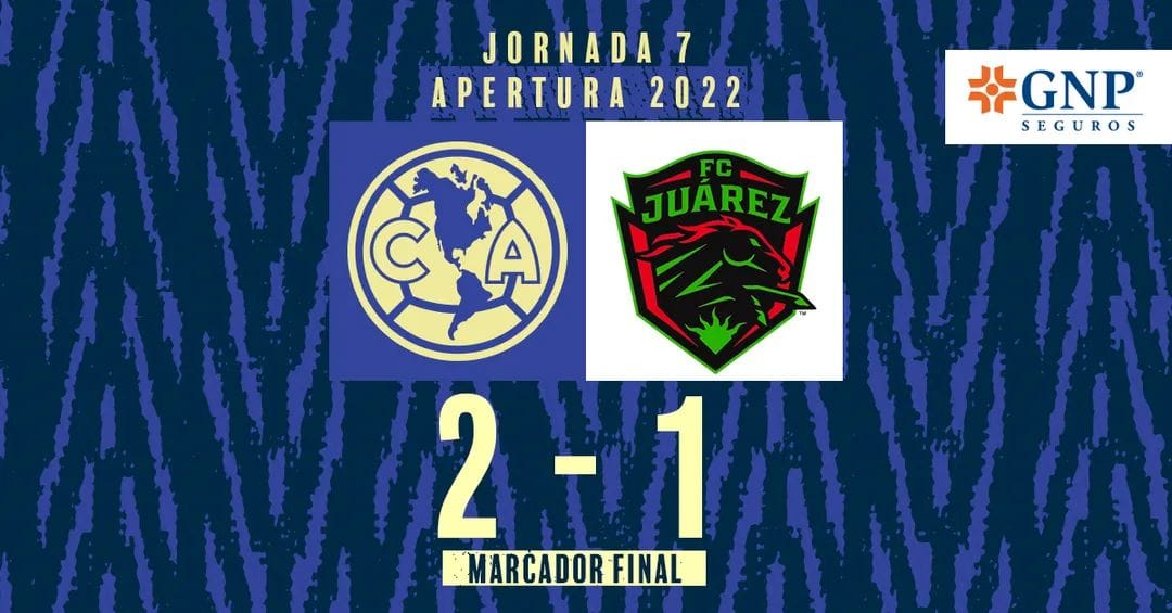 Jornada 7 Torneo Apertura 2022 América 2-1 Juárez, Estadio Azteca goles América: H. Martín 60′, 64′., Goles Juárez: A. Medina 90′