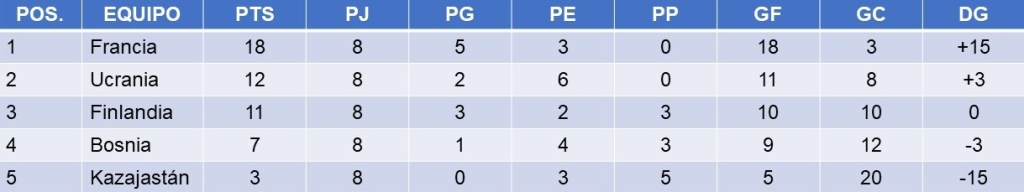¿Cómo se clasificó a la Copa del Mundo?: Francia terminó primero en el grupo D de las eliminatorias europeas.