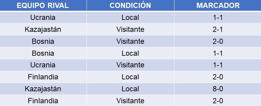 Resultados obtenidos rumbo a obtener la clasificación a Qatar2022.