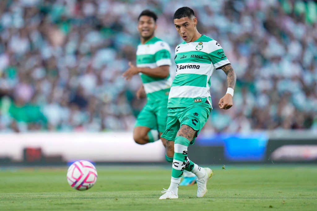 En el primer minuto del partido Preciado no pierde tiempo, roba el balón en los linderos del área y saca un tiro directo a la meta de Volpi, pero se va desviado por un costado. Los Santos buscaban romper el marcador.