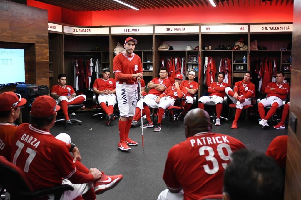 Previo al juego interescuadras, los peloteros escarlatas y el staff de coacheo participaron en una plática motivacional con el triatlonista paralímpico, Rafael Jaime.