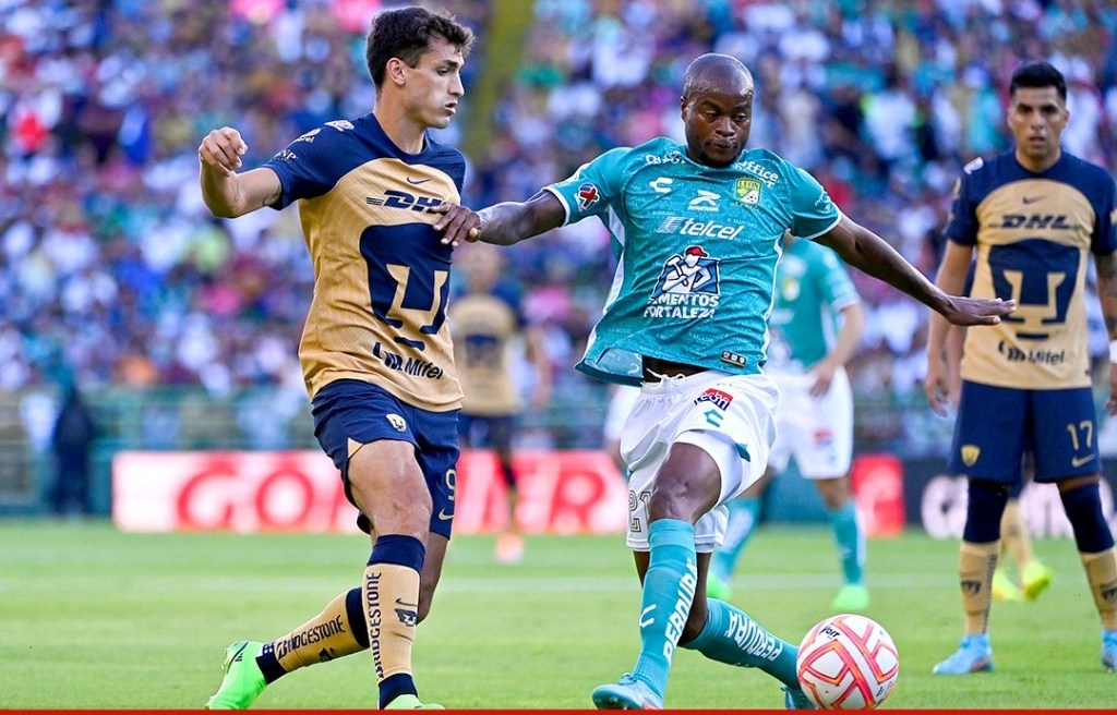 Apenas al minuto 2′ del encuentro se revisaría una mano de León en el área que más tarde se decretaría para que Juan Dinenno anotara el primero para los pumas cobrando pegado al poste imposible para el arquero panza verde.
