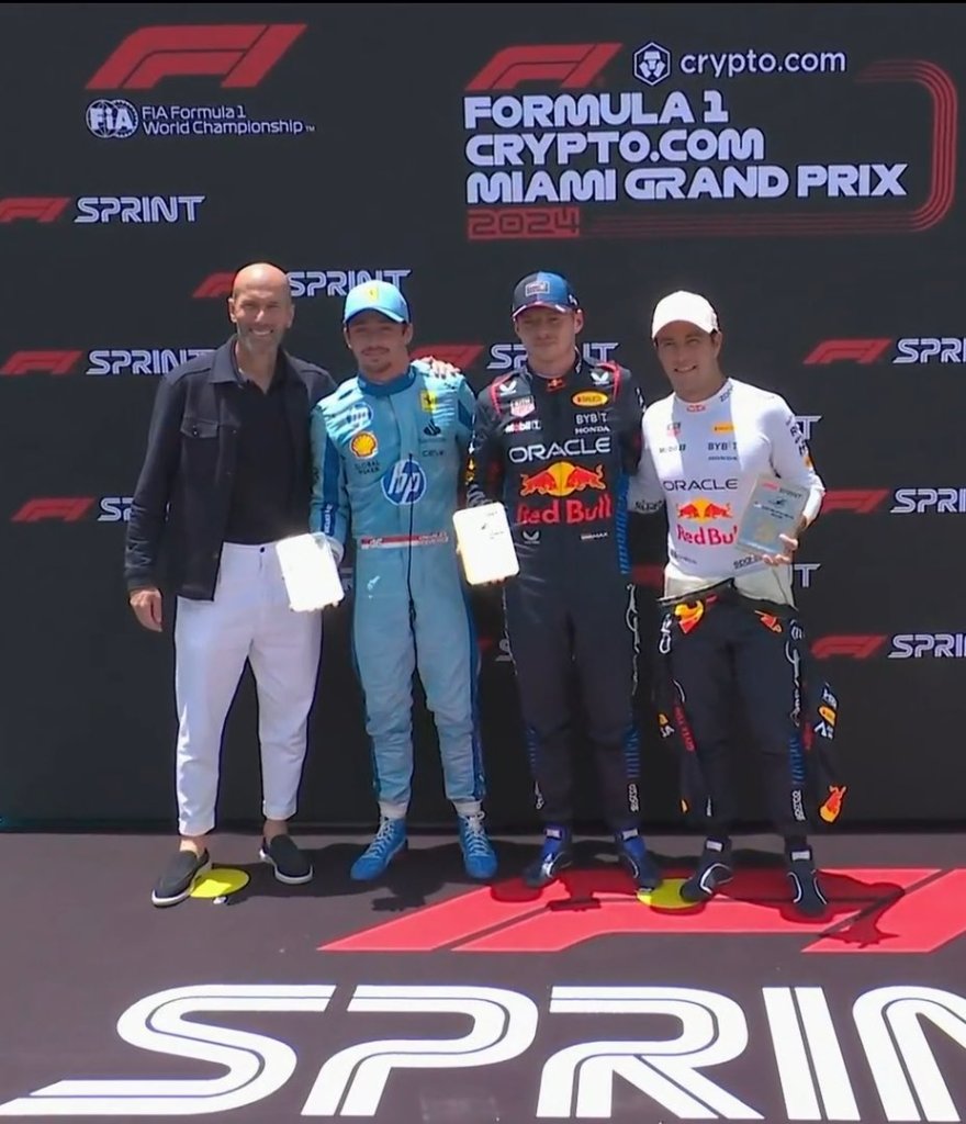 Los primeros tres puestos Verstappen, Lecrerc y Perez recibieron el premio en manos de el ex-jugador francés y director técnico Zinedine Zidane, la leyenda francesa iba a entregarle el premio de segundo lugar al mexicano, este perteneciendo a Charles Lecrerc.